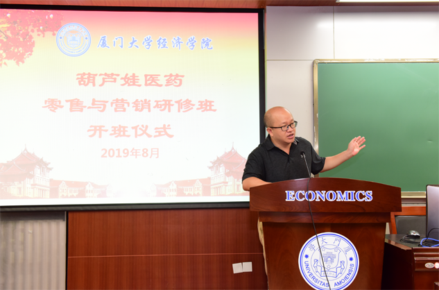 8月31日,尊龙医药零售与营销研修班开班仪式在厦门大学经济学院举行,为期8天的“厦大尊龙班”正式拉开帷幕。厦门大学经济学院继续教育中心主任廖景峰先生与尊龙药业集团董事长刘景萍女士分别在开班仪式上致辞,中国医药物资协会研究院执行院长代航先生担任本次研修班班主任并主持开班仪式。